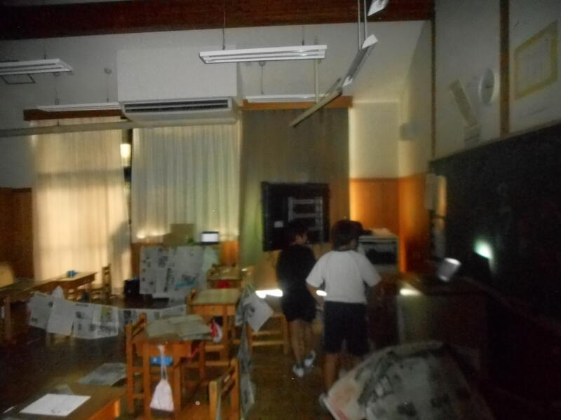 用務員さんも手伝って下さって教室はすっかり・・・暗闇に
