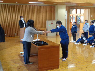 篤行善行児童表彰、子どもの人権絵画コンクール入賞、下野教育書道展入賞、必読図書読破賞の表彰でした。