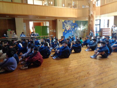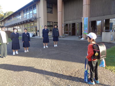 中学生の皆様、担当の中学校の先生にもおせわになりました。(この後も 進んであいさつできるように 小学校でもあいさつ運動を機会にがんばります。)