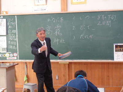 4年生は 社会の町の文化・歴史の学習で『田野辺地区の天祭』について地域の方(田野辺地区の大畑先生)から教えていただきました。