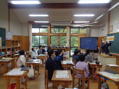 下校後、授業をよりよくするために教員同士で話し合う研修を実施しました。