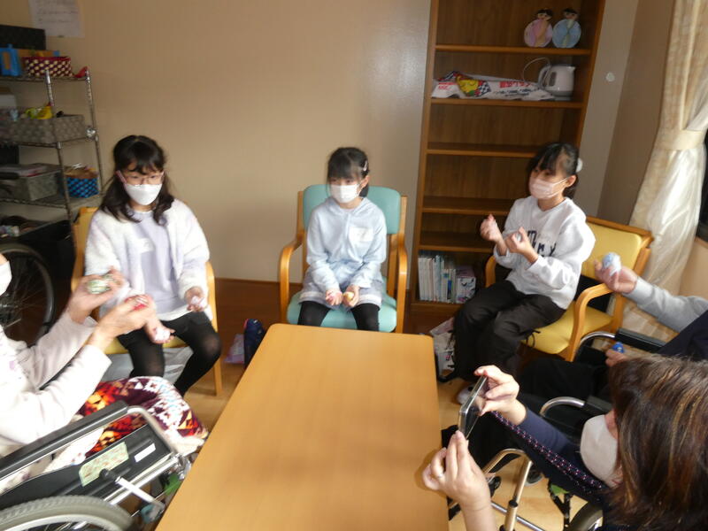 緊張しつつも、高齢者との交流を楽しんでいる様子でした。