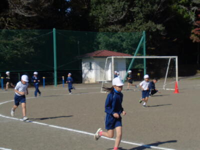 2校時には、1,2年生が外で障害走の練習をしていました。