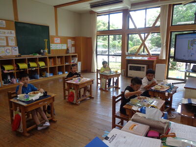 1年生 給食「久しぶりの給食!ハヤシライスがおいしかったよ。」