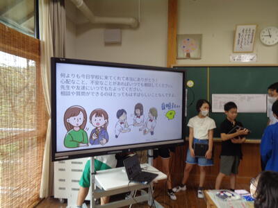 「あきらめない気持ちや励まし合って頑張り抜くことの大切さ」について、1学期の自転車大会の経験、実体験をもとに発表してくれました。ありがとうございました。当日の発表もきっと感動するものとなることでしょう。