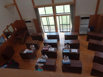 5,6年生はパートに分かれての合唱練習、きれいな歌声でした