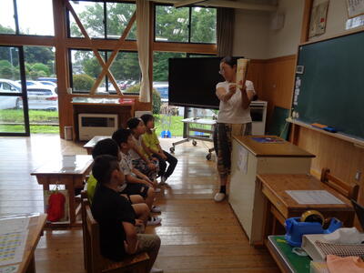 今年度も創作クラブでは、地域の伝統芸能 太々岩戸神楽の体験学習を行いました。