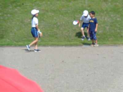 子どもたちは、とても楽しそうに生き生き活動しました。フライングディスク、難しかったですね。