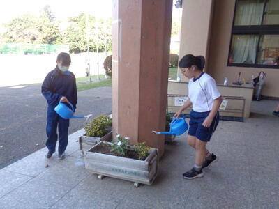まずは登校後に委員会活動。今日も水かけをしてくれました。