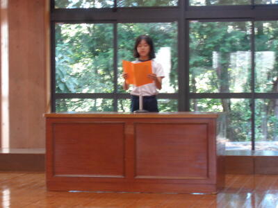 6年生のSさんの作文朗読練習中。今週末の町のPTA研修大会で披露してくれます。