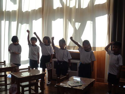 各クラスからは朝の会での応援歌練習の歌声が聞こえてきました