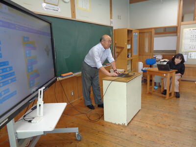 本日5月31日 3年生がICT教育指導員の先生(毎週金曜日に小貝小勤務)が3年生総合の時間に「プログラミング教育」を実施して下さいました。