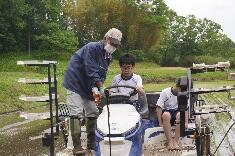 4月13日(木)5年生が、総合的な学習の時間に稲の種まき体験をしました。毎年教えていただいている川又さん宅で稲の種まき体験や工夫した水かけ方、田植機など機械についても学習させていただきました。子どもたちは夢中になって体験したり、機械の大きさに驚いたりしながら学習しました。次の田植え体験も楽しみの様子でした。