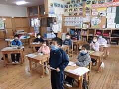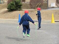 1月27日(水)、業間の時間に長縄跳びを行いました。マスクをつけて、待っている間はソーシャルディスタンスを保って行いました。上学年の児童が、1、2年生に跳ぶタイミングを教えるやさしい姿があちこちで見られました。異年齢集団で活動する意味は道徳的(思いやり、協力、感謝、信頼など)に大きなものがあると再確認しました。
