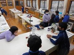 1月28日(木)、4年生が理科の授業を行いました。子供たちが「水を熱したときに出てきたあわの正体をあばこう!」と 沸騰して出る泡をビニル袋に集める実験を行いました。本当であれば、各班で実験することができましたが、グループ活動等も制約していることから、演示実験を各班が順番に見に来るというような形で行いました。子供たちに興味をもたせたり、理解を深めさせたりするために、これからも様々な工夫をして、可能な限り、そのものを目で見たり、自分の手で触ったりできるような授業を行っていきたいと思います。