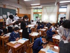 10月7日(水)、5時間目は2年生、6時間目は6年生で研究授業を行いました。市貝町教育委員会の先生や他校の先生も授業を参観にいらっしゃいました。どちらの学年も、自分の考えをワークシートに書き、堂々と発表することができました。