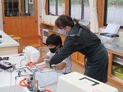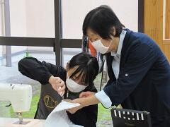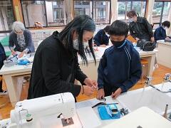 6年生が家庭科でミシンを使ってナップザックをつくりました