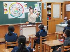 11月27日(金)、3・4年生が学活の時間に風邪の予防法について学習しました。最初に、風邪に関するクイズや模型などを使い、風邪を引く仕組みを学びました。その後、パワーポイント教材で風邪を予防する方法を学びました。授業の最後には、一人一人が風邪を予防するための生活のめあてを発表しました。自分の健康だけでなく周りの人の健康を守るためにも、風邪や感染症予防ができる子どもたちになっていってほしいです。