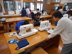 今、5、6年生は家庭科で「わくわくミシン」「楽しくソーイング」の学習をしています。5年生はエプロンを、、6年生はナップザックをミシンで製作中です。月曜日には7名、本日7名のミシンボランティアの皆さんに来校していただき御協力いただきました。ありがとうございました。