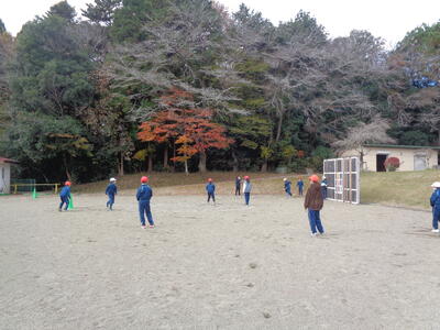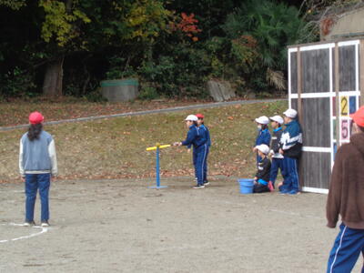 4年生は、体育の学習です。「ティーベースボール(野球のようなもの)」をしています。