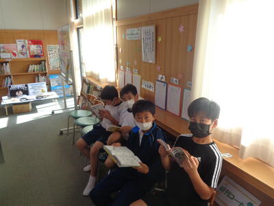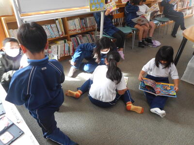 貸出カードを持たせていただいたお陰で、お気に入りの本を借りて持ち帰れた子が多かったです。ありがとうございました。今日は「読書の秋」を堪能した小貝っ子たちでした!