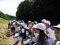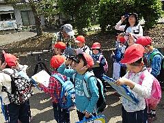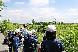 1年生から4年生までは学校周辺、5・6年生はバスで旧小貝中央小や北運動場周辺で観察しました。今回は見られた鳥の種類が少なかったようですが、色々な植物についても教えてもらっていました。
