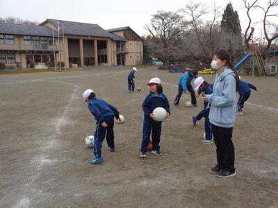 業間や昼休みの自由遊びでは縄跳びやサッカーを楽しんでいました。