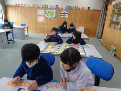 上の句を先生に読んでもらって・・・下の句を確認しつつ札を取っていました。
