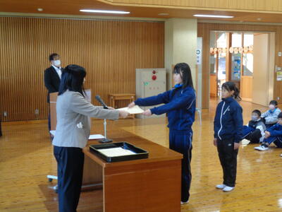 篤行善行児童表彰、子どもの人権絵画コンクール入賞、下野教育書道展入賞、必読図書読破賞の表彰でした。