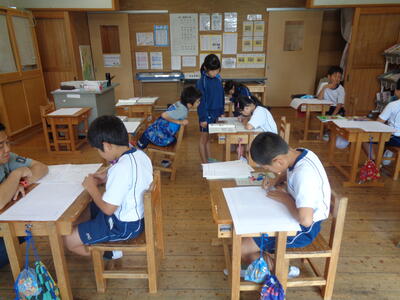 ↑4年生 作文用紙に書いています(お互い 教え合っています)