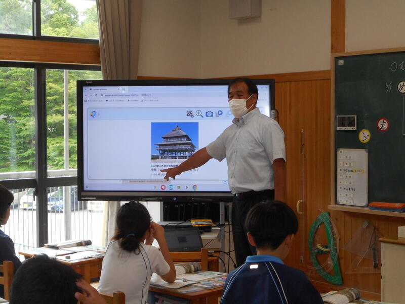 6年生、社会科の歴史の学習の様子です。弥生時代の村づくりについて、佐賀県の吉野ヶ里遺跡から、当時の集落の様子などについて学んでいました。