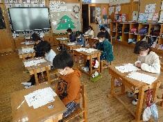 12月15日(木)全校児童を対象に今日と明日、学力テストを行います。今日は、国語、理科、英語の学力テストを行いました。国語は、全学年が行い、理科は3年生以上の学年が行いました。英語は、5・6年生が行いました。みんな本気になって取り組んでいました。明日は、算数と社会の学力テストがあります。