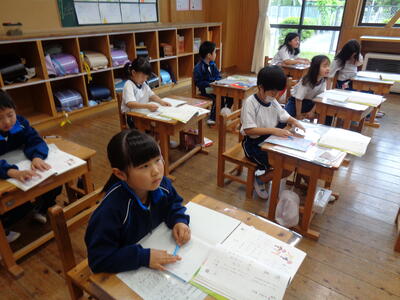 4年生、しっかりした姿勢で(起立して)音読をしています。