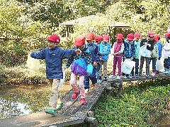 ボランティアのみなさんの案内で自然観察をしたり、木の実拾いをしました。センターに戻ってから、ボランティアの木村さんのご指導で、ドングリのコマやヤジロベエをつくりました。もう少し遅ければ、紅葉の中の四季桜も見られましたが、すばらしい秋を満喫できたようです。