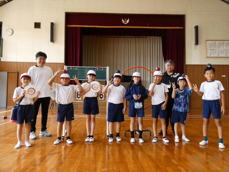 子どもたちは、とても楽しそうに生き生き活動しました。フライングディスク、難しかったですね。