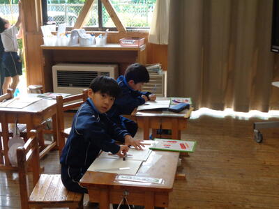 1年生は「へ」の学習。「○○へ 行く。」等、「へ」を使用する文作りをしました。