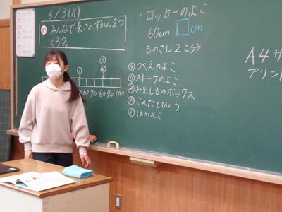 再度戻って2年生。先ほど測っていた物の名前とその長さを発表しました。↓