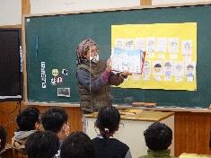 12月7日(水)朝のフレッシュタイムのときに、読み聞かせボランティアの「ひまわり」さんに来ていただき、各学年の児童に読み聞かせを行っていただきました。1年生では、アフリカを舞台とした絵本や、アフリカの民族楽器も紹介していただきました。子どもたちは太鼓をたたきながら絵本を楽しんでいました。ありがとうございました。