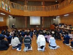 11月16日(木)読み聞かせボランティア「みなみかぜ」の皆さんに来ていただき、音響効果もすばらしく、子ども達の心に伝わる朗読劇を堪能させていただきました。また、図書委員会の児童が中心となって朗読を行ったり、クイズを出したりしました。子どもたちからの積極的な感想発表もあり、充実した読書祭りになりました。