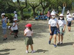 8月27日(木)、業間の時間に縦割班共遊を行いました。1年生から6年生の縦割班は、通常清掃の時間に一緒に活動していますが、本日は縦割班で仲良く遊びました。ドッチボールやドッチビーをして遊ぶ班が多かったです。低学年の児童にボールを投げる時には、やさしく投げてあげたり、転んでしまった下級生にすぐ手を貸して立たせてあげたりする姿が見られて、とてもうれしい気持ちになりました。