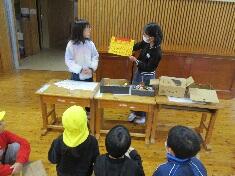 11月13日(月)1・2年生が、生活科の学習で、杉山保育所や市貝たいよう幼稚園の園児を招待して、ふれあい活動(幼保小交流事業)を行いました。1・2年生は、この日のために自然のもの使って魚釣りゲームや迷路を作ったり、身近にあるものを使ってボウリングゲームなどを作ったりして準備をしました。ゲームの仕方やルールなど、積極的に説明し、みんなで楽しいふれあい活動ができました。
