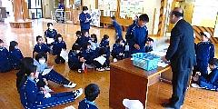 日頃見守っていただいている「子ども110の家」に、本日、近所の児童が出向いてお礼を伝えることにしました。そこで、昼休みに登校班長や代表児童が、ふれあい広場で準備をしました。