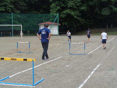 県陸上大会出場予定の高学年生は練習中