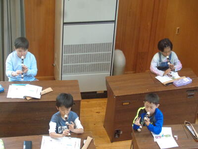 ↑こちらは 4校時の3年生。こっそり2階から覗いていたら、にっこり手を振ってくれました。リコーダーで上手に演奏していました。音が合うのは楽しいですね。聞いていてこちらまで楽しくなりました。
