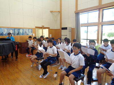 6校時に5、6年合同音楽授業を実施しました。合唱曲に取り組みました。
