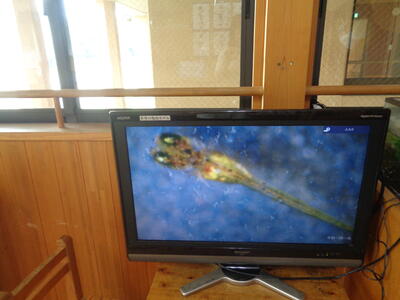 (すいすい泳いでいて あっという間に電子顕微鏡の視界から逃げていくので 一瞬の写真!)