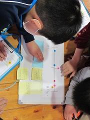 「小規模校である本校の良さを道徳に生かそう」と考えながら1年間研究を進めてきました。これまでにも4・5・6年生の先生方が率先して話し合い、アイデアを出し合って新しい試みをしてくれましたが、今回は3学年合同の縦割り班による授業でした。他の学年の人たちと一緒の授業で相乗効果が現れ、多くの手が挙がりました。また、3人の先生が役割ごとに登場し、子どもたちの葛藤する心を揺さぶりました。