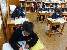 1月27日(木)3・4時限目の学習の様子です。1年生は、国語で感想画を描いていました。2年生は、算数の図形の学習で具体物を作っていました。3年生は、小数の引き算について学習していました。4年生は、総合的な学習の時間として福祉の学習のまとめを行っていました。5年生は、版画やデザインの学習をしていました。6年生は、家庭科で照度の学習をしていました。学習のめあてや自分の目標に向かって頑張っています。