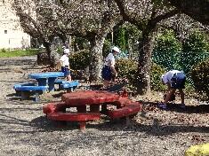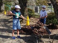 9月21日(火)清掃の時間(13:20~13:35)に6年生が落ち葉清掃をしてくれました。校庭の周辺は、落ち葉が降り積もるようになってまいりましたので、6年生が、落ち葉を集め、一輪車で落ち葉置き場まで運んでくれました。ありがとうございました。