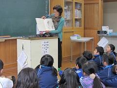 1年生は大貫さんが「ろくべえ まってろ」「わたしたちうんこともだち」、2年生は皆川さんが「てんぱたん てんぱたん」「ともだちできたよ」、3年生は仲山さんが「ひみつだから」「ブレーメンのおんがくたい」、4年生は小松さんが「いえない いえない」「紙芝居 きんのがちょう」、5年生は松尾さんが「ミロとまほうのいし」「トラネコとクロネコ」「ねこづめのよる」、6年生は三武さんが「シベリアの豆の木(香月泰男物語)」を読んでくださいました。